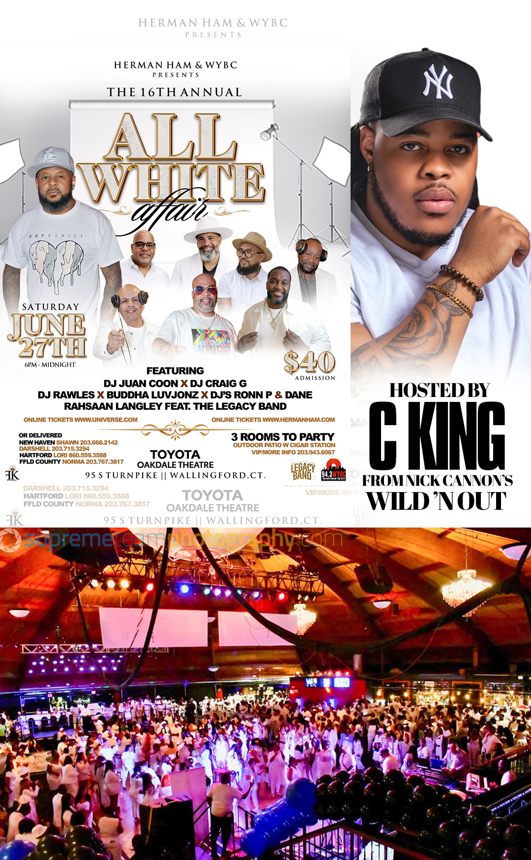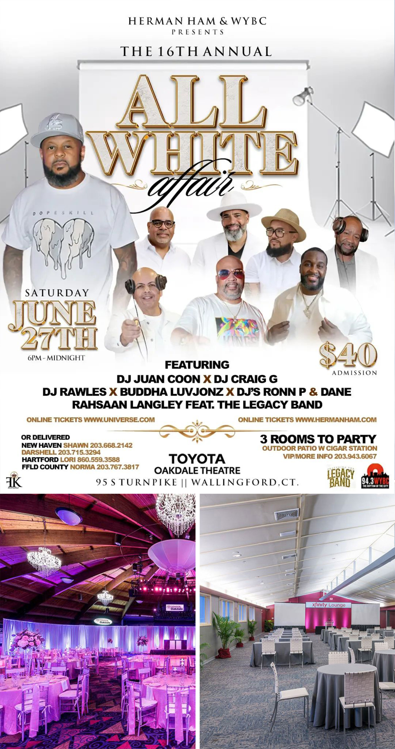 Live R&B by Rahsaan Langley feat. The Legacy Band, Hot 93.7’s Craig G,Fairfield County’s Dj Juan Coon, Dj Rawles, Hartford County’s Dj’s RON P & DANE, and Hosted By Nick Cannon’s Wildin Out’s own Comedian C King and 94.3 WYBC’s own Juan Castillo This years event is held once again at the Luxurious TOYOTA OAKDALE THEATER 95 Turnpike South | Wallingford, CT.